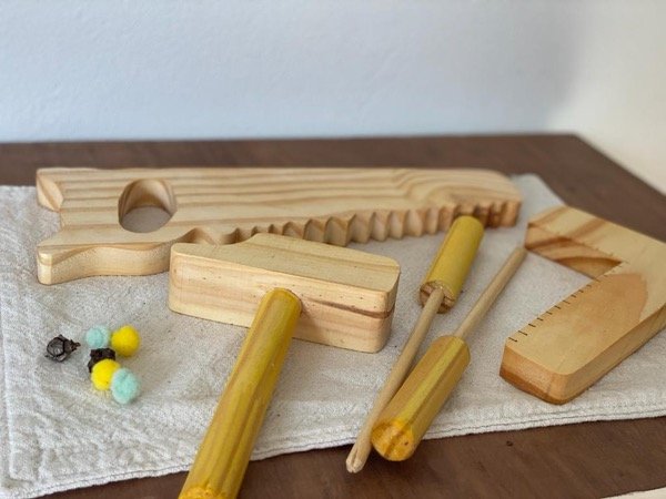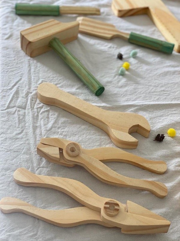 Destornilladores, serrucho, llave, martillo, escuadra, pinza con movimiento.