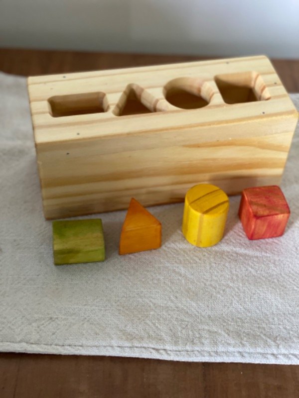 Caja de encastre con 4 figuras geométricas para encastrar.