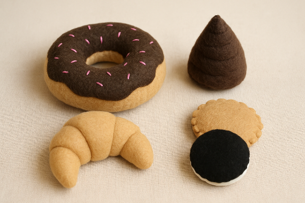 Mercadito de tela, para colgar y no parar de jugar! + 5 productos de pastelería en tela.